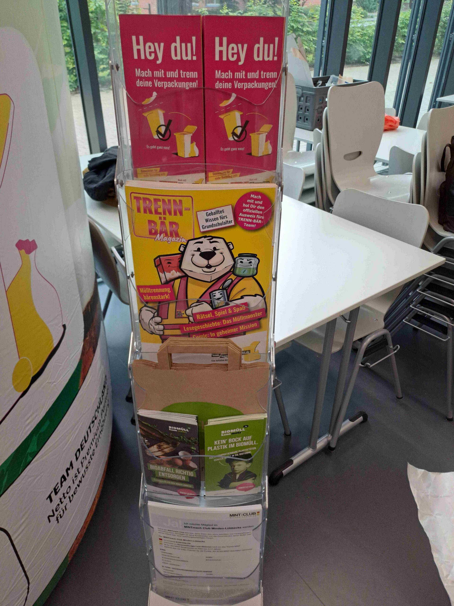 5 riesige Verpackungen wie z.B. 3m hohe Joghurtbecher, Konservendosen oder Milchtüten machten vom 3.-16.06.2024 als Eyecatcher auf das wichtige Thema “richtige Mülltrennung” aufmerksam. Zu finden waren diese XXL-Verpackungen in Kreishausnähe vor dem Schinkelbau an der Portastraße in Minden, auf den KAVG-Wertstoffhöfen Pohlsche Heide in Hille und dem Wertstoffhof Lübbecke sowie bei den Städtischen Betrieben in Minden.